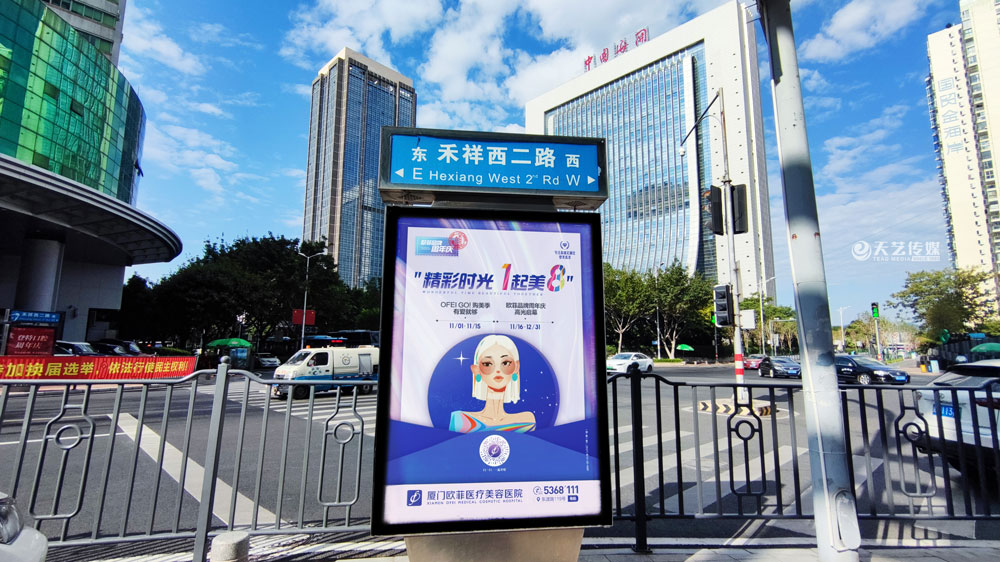 值此歐菲品牌周年慶之際,歐菲品牌在廈門(mén)島內(nèi)各個(gè)黃金路段(仙岳路、嘉禾路、湖濱南路、鷺江道、環(huán)島干道、東渡路等)投放超過(guò)400座城市路名牌和200座社區(qū)快遞柜媒體(集中在中高端人群住宅區(qū)、居住率較為密集的生活居住區(qū))。