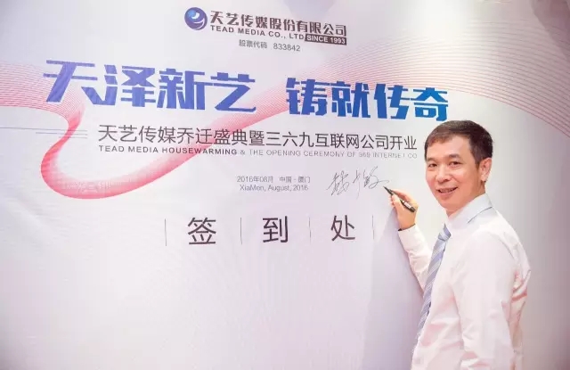 “今天是2016年8月6日,星期六,是喬遷和開業(yè)的黃道吉日,我們天藝傳媒公司選擇今天喬遷,三六九網(wǎng)絡公司選擇今天正式開業(yè),是天時。選擇悅享中心這塊風水寶地是地利,特別是我們今天邀請來了這么多咱們天藝的新老朋友,是人和”,天藝傳媒董事長林少敏如先生是說。