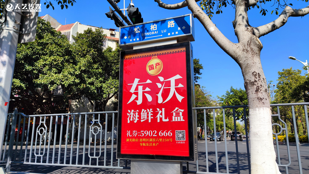 2021開年大吉,東沃海鮮與天藝傳媒攜手,全市百座路名牌提前預祝:祝廈門全市人民2021年年有余,新年節(jié)節(jié)高。