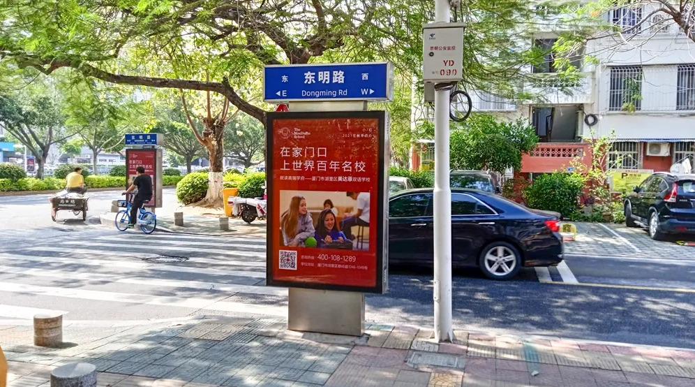 美達(dá)菲在廈門確定扎根后,重視線上線下的一系列宣傳告知,年后即開始在廈門戶外多個渠道進(jìn)行大范圍的宣傳推廣,以“在家門口,上世界百年名校”為口號,集中在五緣灣、觀音山、會展、萬達(dá)廣場、蔡塘廣場等多個中高端商圈、商務(wù)圈,以及仙岳路、廈禾路、嘉禾路等多個主干道進(jìn)行城市路名牌的投放,同時在島內(nèi)多個高端住宅小區(qū)的快遞柜進(jìn)行大幅畫面展示。
