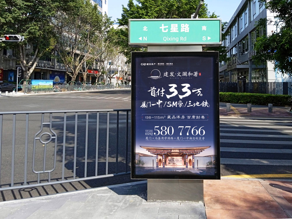 本次建發(fā)文瀾和著二期樓盤再次與天藝傳媒攜手,共同續(xù)寫輝煌。建發(fā)文瀾和著二期開盤,再次選擇投放戶外城市路名牌超過100座,且均在島內黃金點位覆蓋,包括主干道,如:廈禾路、體育路、金尚路、湖濱中路、禾祥西路、禾祥東路等車流人流密集路段,以及商超圈周邊路段,如:火車站羅賓森、思北路口、輪渡周邊。