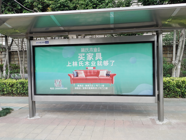 一般情況下,候車(chē)亭廣告使用單一的顏色作背景,文字采用與背景顏色反差較大的色彩,這樣既能襯托主體,又能令遠(yuǎn)處的人可以清楚地看到。