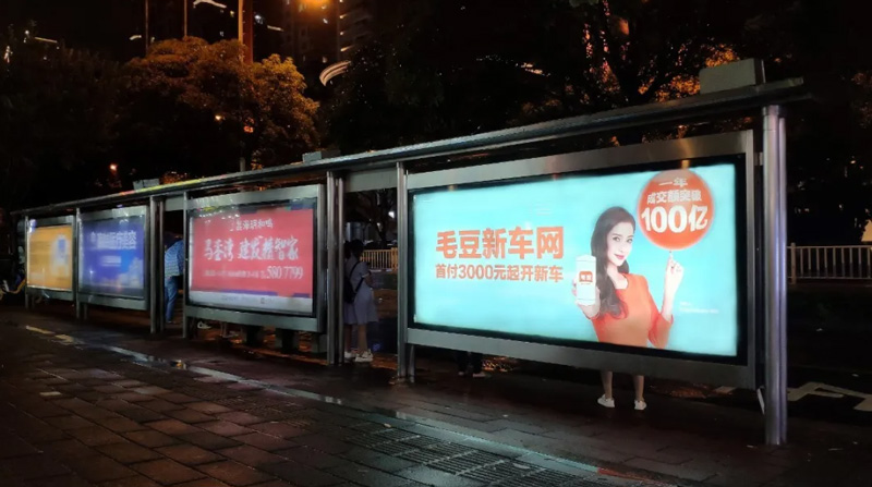 年輕一代有購(gòu)車需求的受眾們,每日都能在城市出行中必定要長(zhǎng)時(shí)間停靠的候車亭中,通過大面積的畫面刺激及重復(fù)接觸,將毛豆新車網(wǎng)品牌植入人心。
