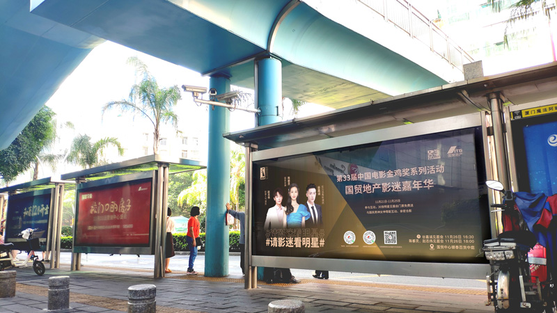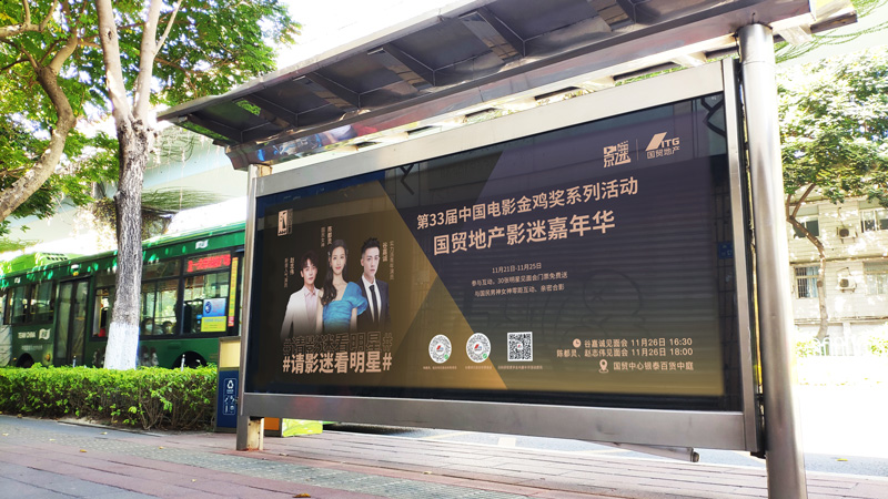 隨著本次金雞盛典系列活動(dòng)的到來,廈門處處充滿了金雞電影盛會(huì)舉辦的氣氛。作為連接廈門各個(gè)主干道的公交網(wǎng)絡(luò),遍布城市大街小巷的公交候車亭媒體,以#影迷嘉年華#、#請(qǐng)影迷見明星#等為主背景畫面,全城展示。