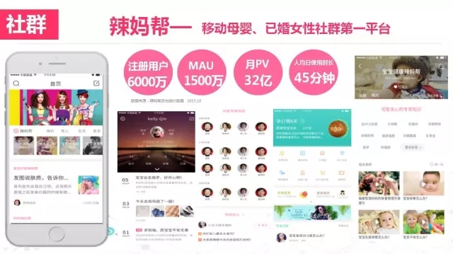 辣媽幫創(chuàng)立于2012年5月,僅用了4年時間,便擁有了6000萬的用戶。辣媽幫致力于打造全新母嬰生態(tài)鏈,旗下四大應(yīng)用“孕期伴侶-辣媽幫-荷花親子-辣媽商城”涵蓋了女性“育兒-生活-情感-消費(fèi)”四大領(lǐng)域。